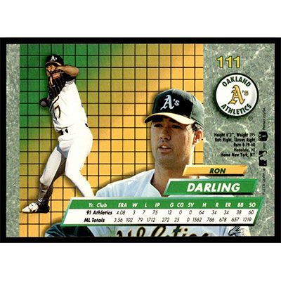 This is a 1992 Ultra Ron Darling baseball card. The card is #111 and pictures show condition.