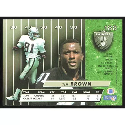 This is a 1992 Ultra Tim Brown football card. The card is #188 and pictures show condition.