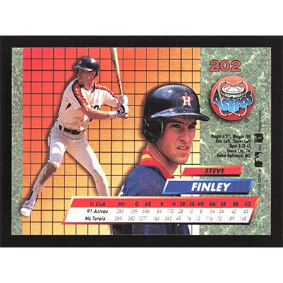 This is a 1992 Ultra Steve Finley baseball card. The card is #202 and pictures show condition.