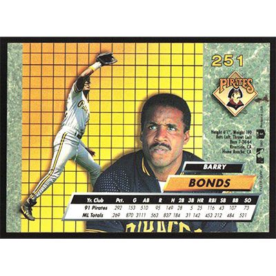 This is a 1992 Ultra Barry Bonds baseball card. The card is #251 and pictures show condition.