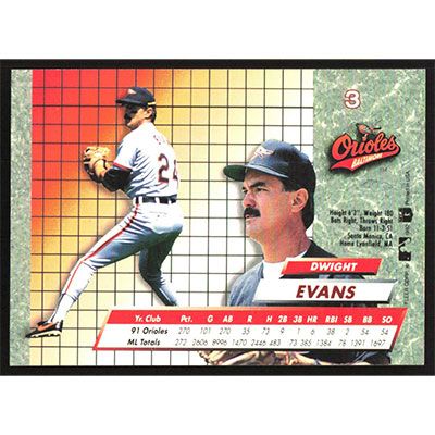 This is a 1992 Ultra Dwight Evans baseball card. The card is #3 and pictures show condition.