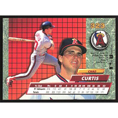This is a 1992 Ultra Chad Curtis baseball card. The card is #323 and pictures show condition.