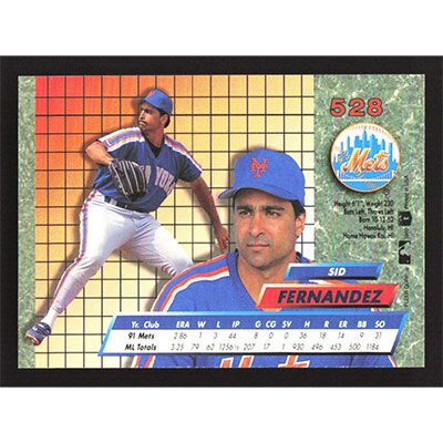This is a 1992 Ultra Sid Fernandez baseball card. The card is #528 and pictures show condition.