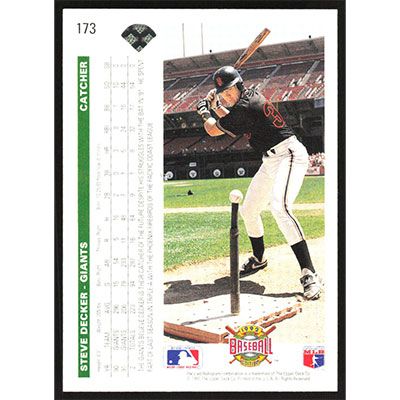 This is a 1992 Upper Deck Steve Decker baseball card. The card is #173 and pictures show condition.