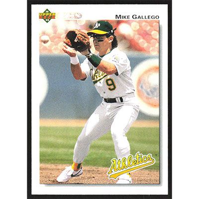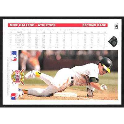 This is a 1992 Upper Deck Mike Gallego baseball card. The card is #193 and pictures show condition.