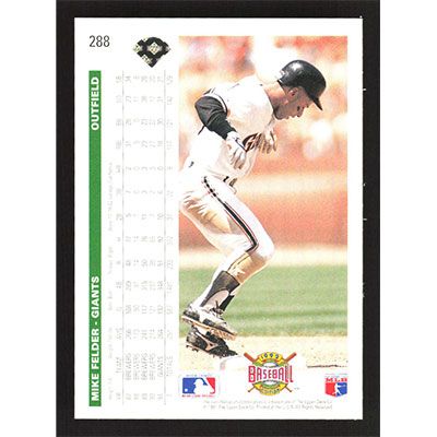 This is a 1992 Upper Deck Mike Felder baseball card. The card is #288 and pictures show condition.