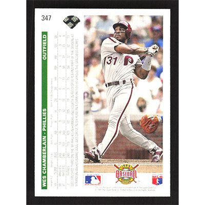 This is a 1992 Upper Deck Wes Chamberlain baseball card. The card is #347 and pictures show condition.