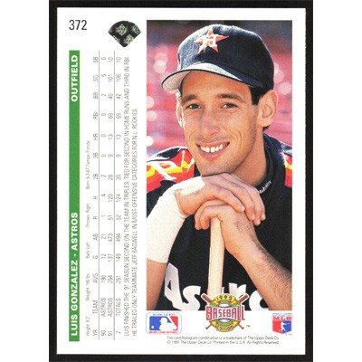 This is a 1992 Upper Deck Luis Gonzalez baseball card. The card is #372 and pictures show condition.