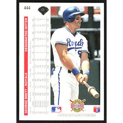 This is a 1992 Upper Deck George Brett baseball card. The card is #444 and pictures show condition.