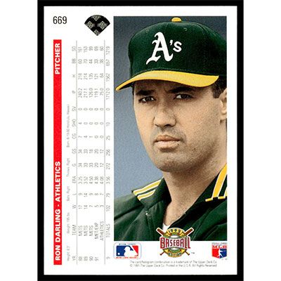 This is a 1992 Upper Deck Ron Darling baseball card. The card is #669 and pictures show condition.
