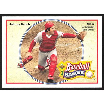 This is a 1992 Upper Deck Bench/Morgan Heroes Johnny Bench baseball card. The card is #38 and pictures show condition.