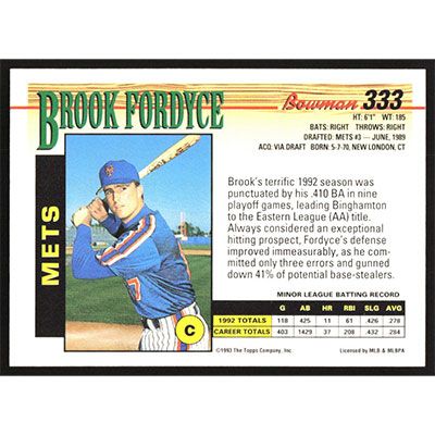 This is a 1993 Bowman Brook Fordyce baseball card. The card is #333 and pictures show condition.