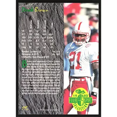 This is a 1993 Classic Four Sport Derek Brown football card. The card is #115 and pictures show condition.