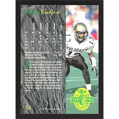 This is a 1993 Classic Four Sport Ronnie Bradford football card. The card is #153 and pictures show condition.