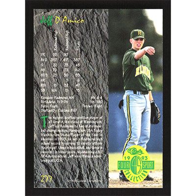This is a 1993 Classic Four Sport Jeff D'Amico baseball card. The card is #277 and pictures show condition.