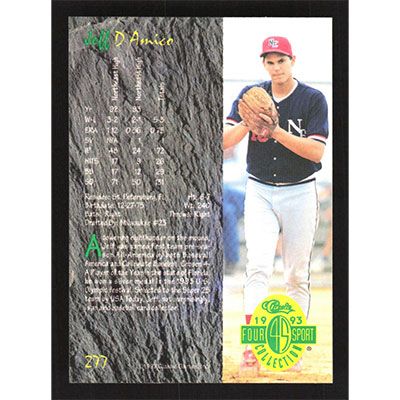 This is a 1993 Classic Four Sport Jeff D'Amico baseball card. The card is #277 and pictures show condition.