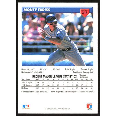 This is a 1993 Donruss Monty Fariss baseball card. The card is #245 and pictures show condition.