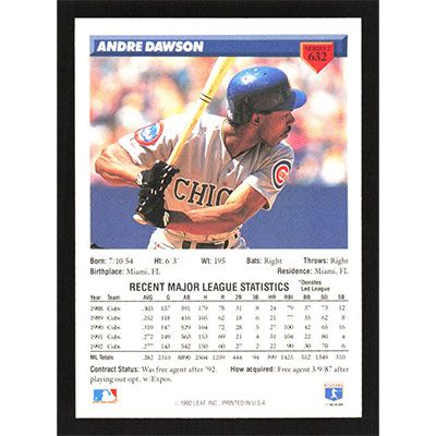 This is a 1993 Donruss Andre Dawson baseball card. The card is #632 and pictures show condition.