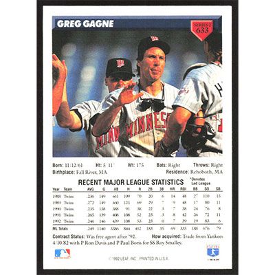 This is a 1993 Donruss Greg Gagne baseball card. The card is #633 and pictures show condition.