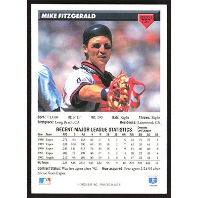 This is a 1993 Donruss Mike Fitzgerald baseball card. The card is #757 and pictures show condition.