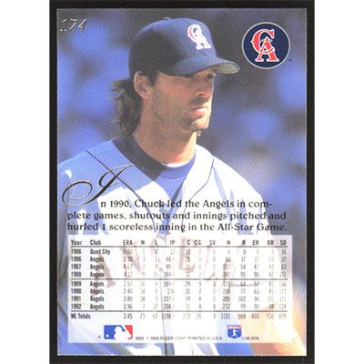 This is a 1993 Flair Chuck Finley baseball card. The card is #174 and pictures show condition.