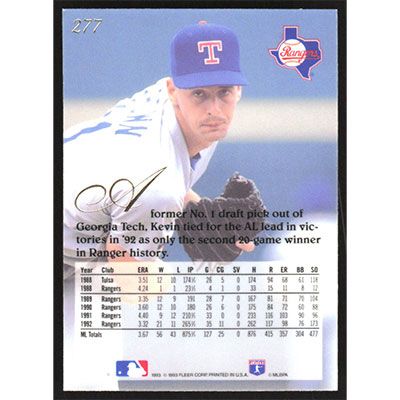 This is a 1993 Flair Kevin Brown baseball card. The card is #277 and pictures show condition.
