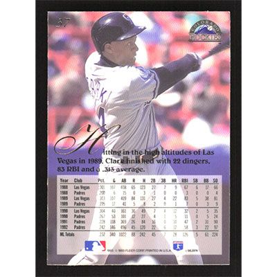 This is a 1993 Flair Jerald Clark baseball card. The card is #37 and pictures show condition.