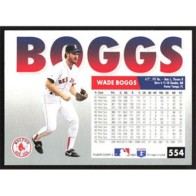 This is a 1993 Fleer Wade Boggs baseball card. The card is #554 and pictures show condition.