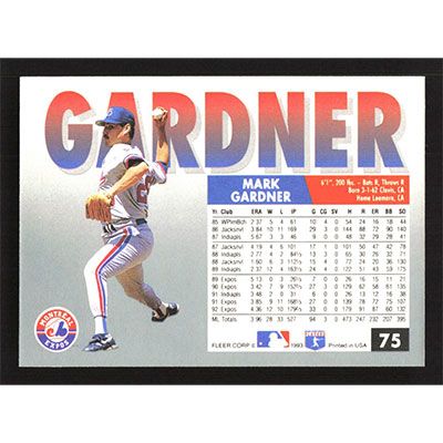 This is a 1993 Fleer Mark Gardner baseball card. The card is #75 and pictures show condition.