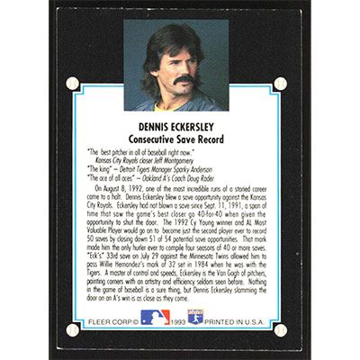 This is a 1993 Fleer Golden Moments Dennis Eckersley baseball card. The card is #NNO and pictures show condition.