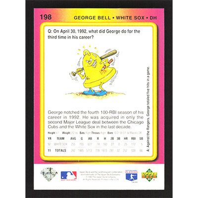This is a 1993 Fun Pack George Bell baseball card. The card is #198 and pictures show condition.