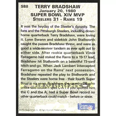 This is a 1993 Heads & Tails SB XXVII Terry Bradshaw football card. The card is #SB8 and pictures show condition.