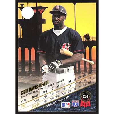 This is a 1993 Leaf Chili Davis baseball card. The card is #254 and pictures show condition.