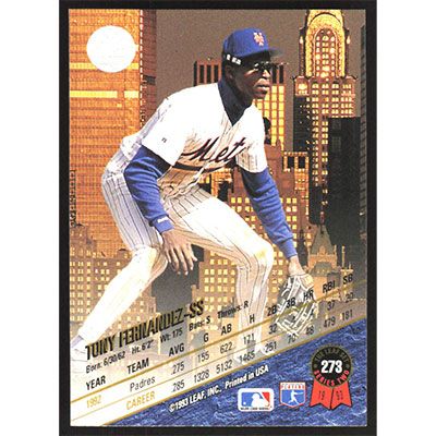 This is a 1993 Leaf Tony Fernandez baseball card. The card is #273 and pictures show condition.