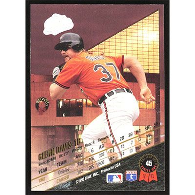 This is a 1993 Leaf Glenn Davis baseball card. The card is #45 and pictures show condition.