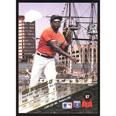 This is a 1993 Leaf Mike Devereaux baseball card. The card is #67 and pictures show condition.