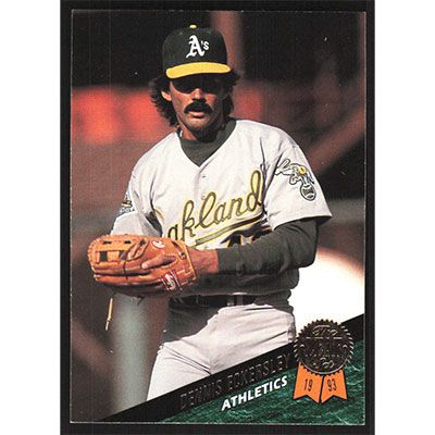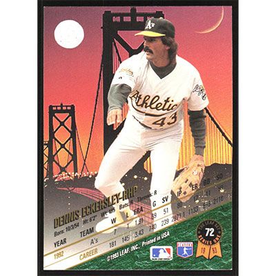 This is a 1993 Leaf Dennis Eckersley baseball card. The card is #72 and pictures show condition.