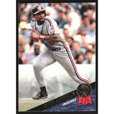 This is a 1993 Leaf Sandy Alomar Jr. baseball card. The card is #83 and pictures show condition.