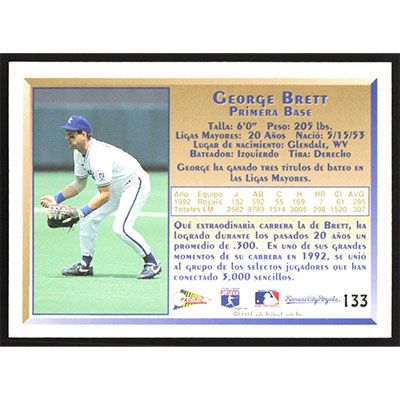 This is a 1993 Pacific Spanish George Brett baseball card. The card is #133 and pictures show condition.
