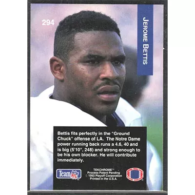 This is a 1993 Playoff Jerome Bettis football card. The card is #294 and pictures show condition.