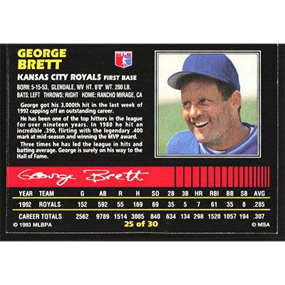 This is a 1993 Post George Brett baseball card. The card is #25 and pictures show condition.