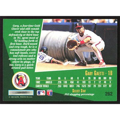 This is a 1993 Select Gary Gaetti baseball card. The card is #262 and pictures show condition.