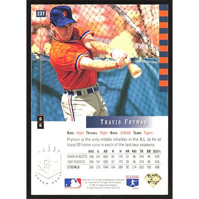 This is a 1993 SP Travis Fryman baseball card. The card is #237 and pictures show condition.