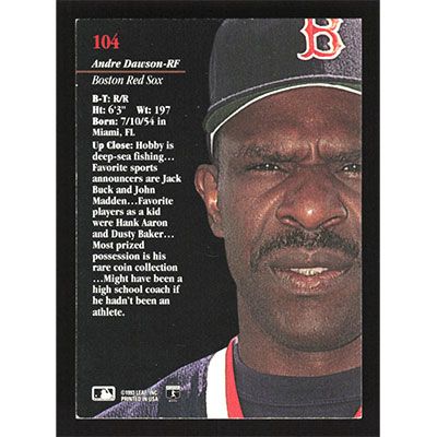This is a 1993 Studio Andre Dawson baseball card. The card is #104 and pictures show condition.