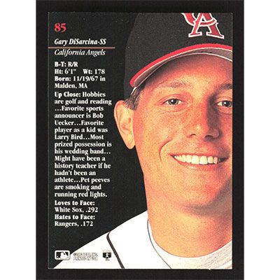 This is a 1993 Studio Gary DiSarcina baseball card. The card is #85 and pictures show condition.