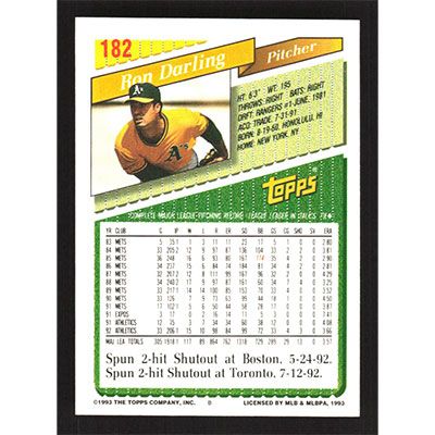 This is a 1993 Topps Ron Darling baseball card. The card is #182 and pictures show condition.