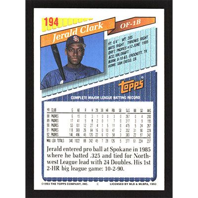 This is a 1993 Topps Jerald Clark baseball card. The card is #194 and pictures show condition.