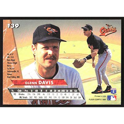 This is a 1993 Ultra Glenn Davis baseball card. The card is #139 and pictures show condition.