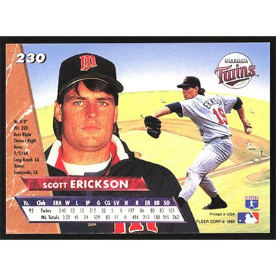 This is a 1993 Ultra Scott Erickson baseball card. The card is #230 and pictures show condition.