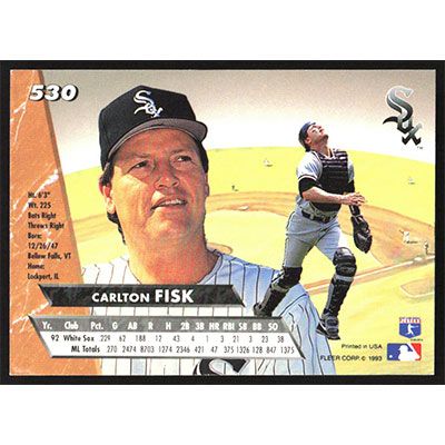 This is a 1993 Ultra Carlton Fisk baseball card. The card is #530 and pictures show condition.